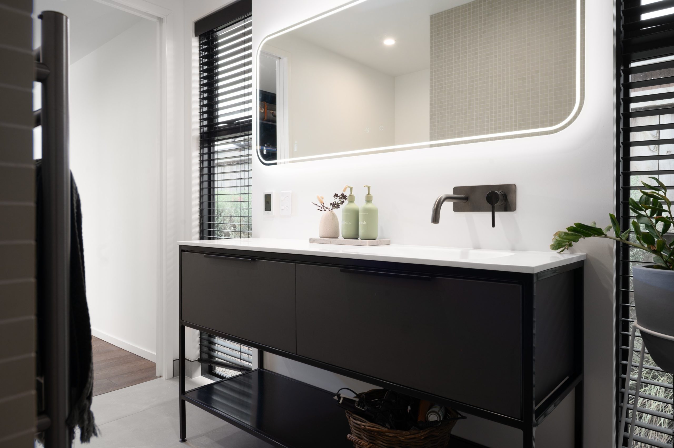 When you’re a builder building your own home, the stakes are personal, and so is every detail. That was certainly the case for Brad from Turton Builders, who approached this project with both experience and intent. “As a builder’s own project, we were involved from the very beginning of this build, designing a scaled floor plan and ideal elevations and joinery design to supply to our draughtsman,” says Brad Turton. Designed during the uncertain days of COVID lockdowns, the project came with its challenges. “The dig out was due to happen during the first March 2020 lockdown, which, of course, was delayed… the pressure was on to complete the build to be moved in before our second baby was born.” Despite the hurdles, the result is a warm, contemporary family home filled with bespoke detailing, from carefully aligned window frames to clever cabinetry that balances form and function.