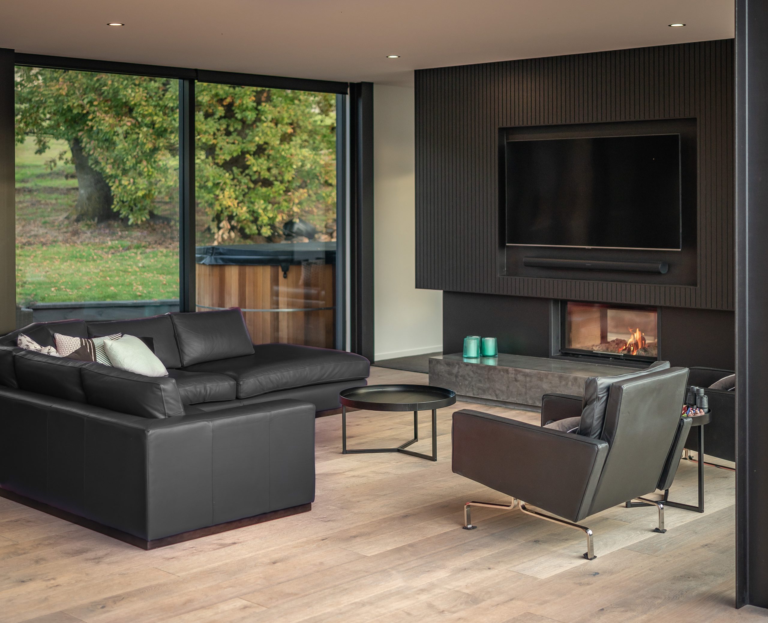 One of this design’s most notable aspects is the fireplaces supplied by Escea Wood Fires.